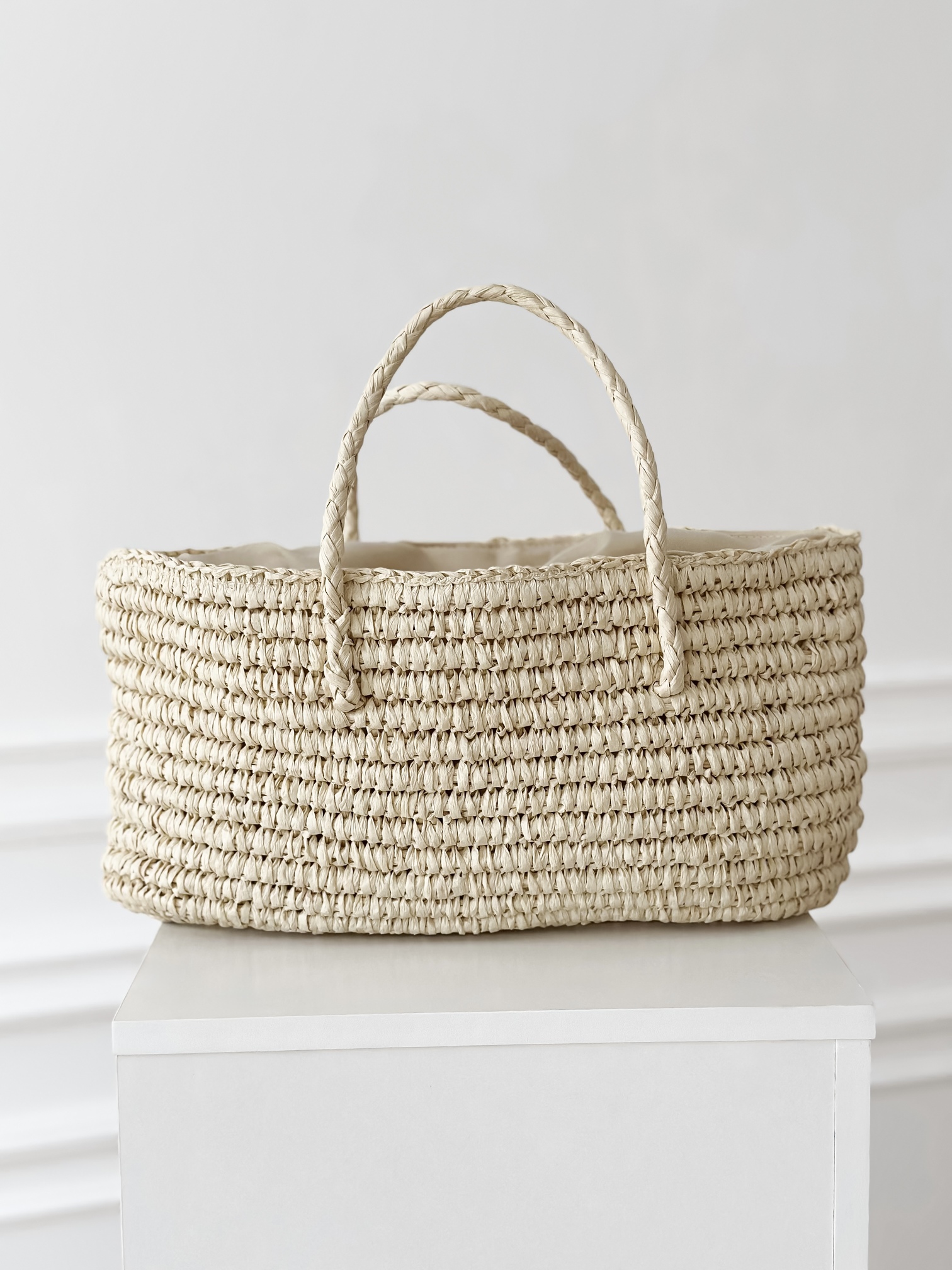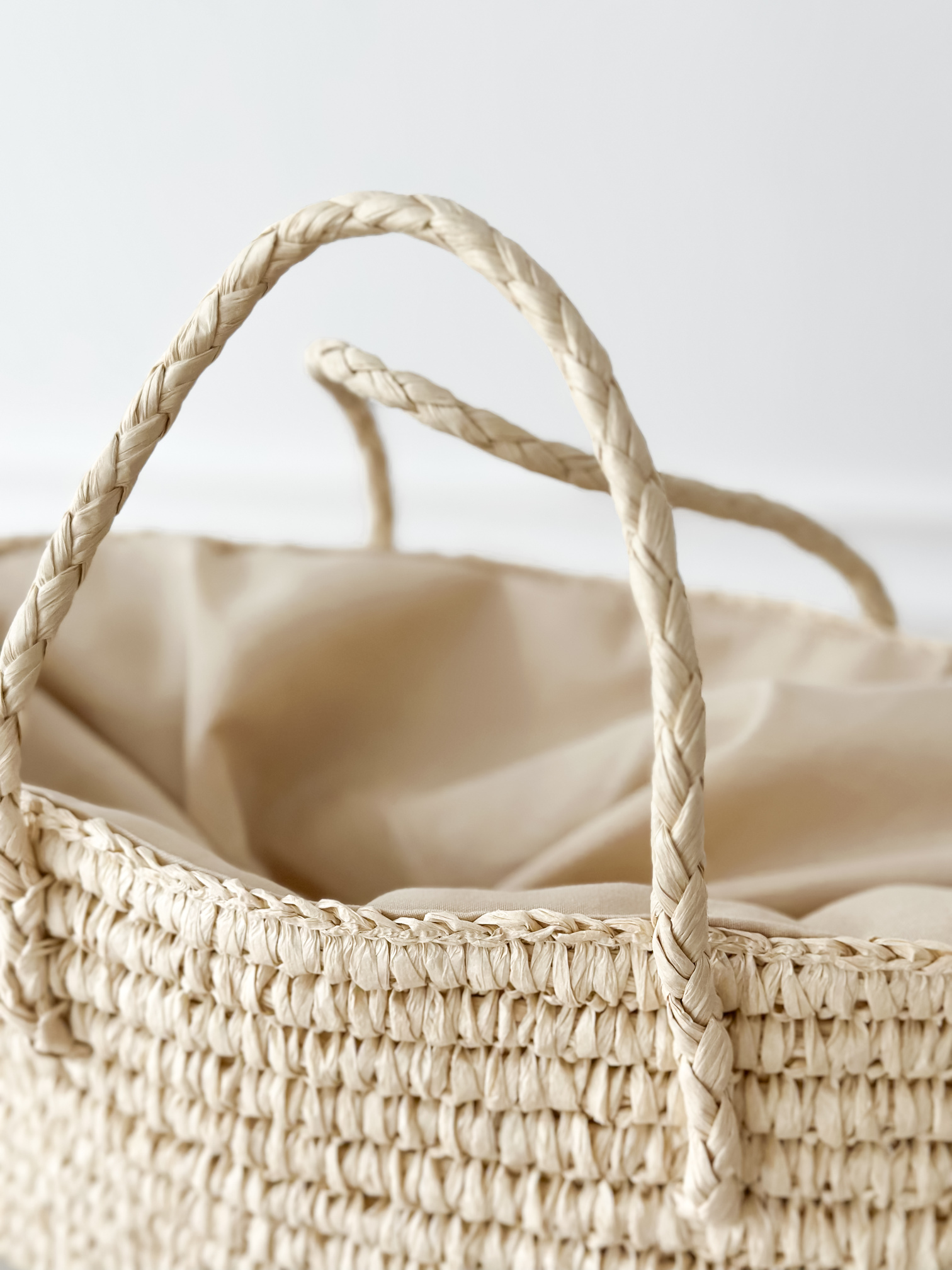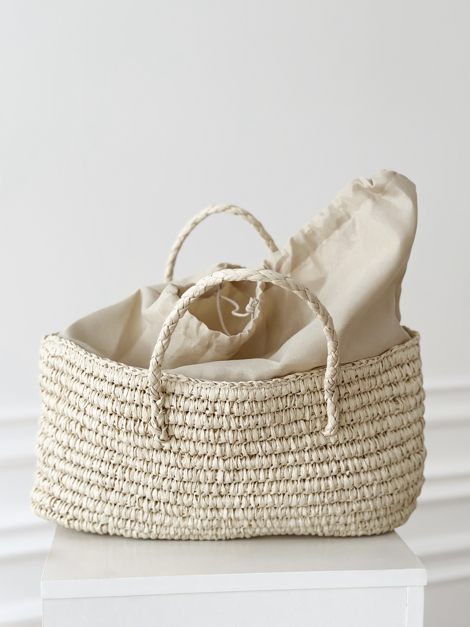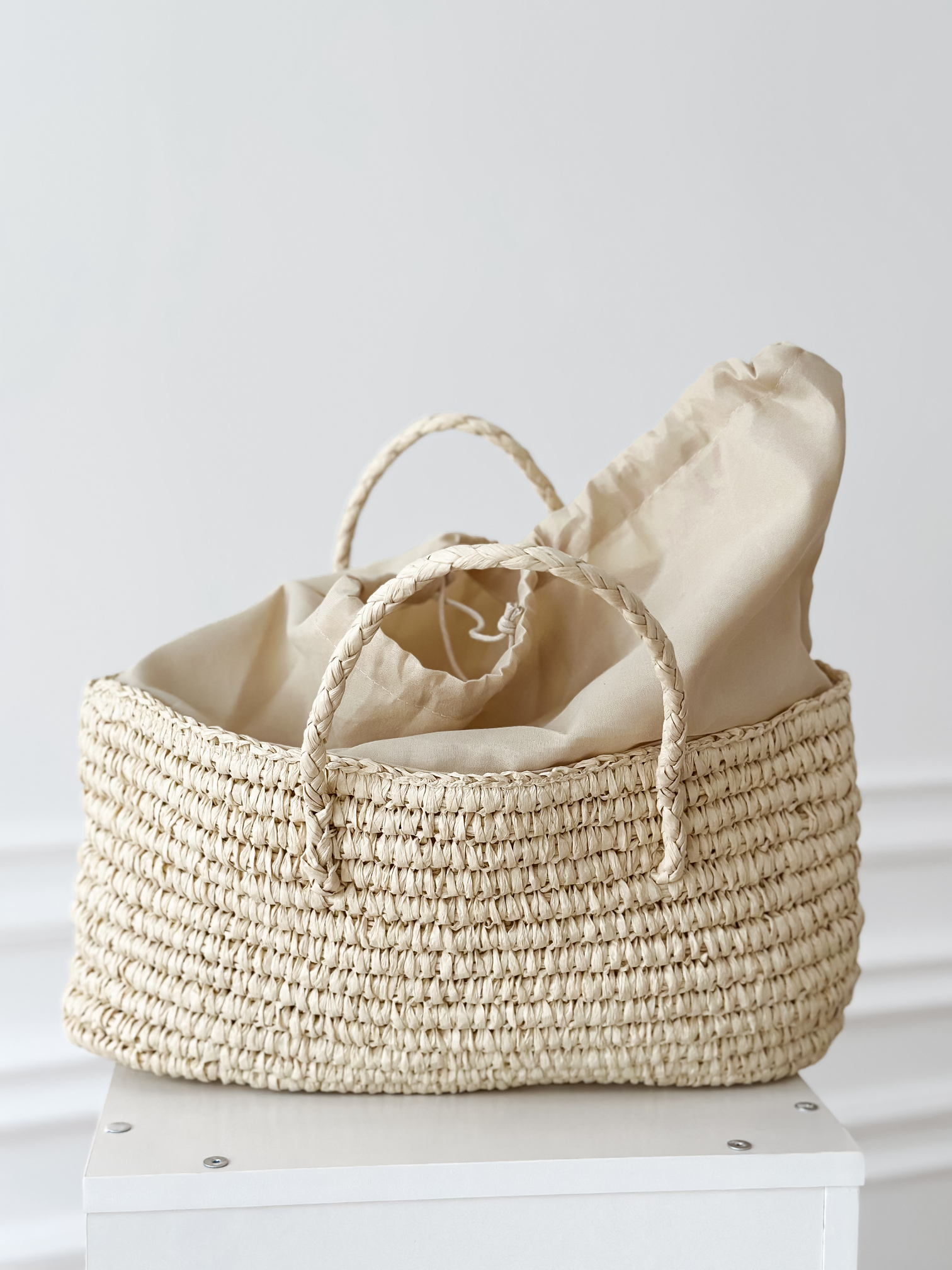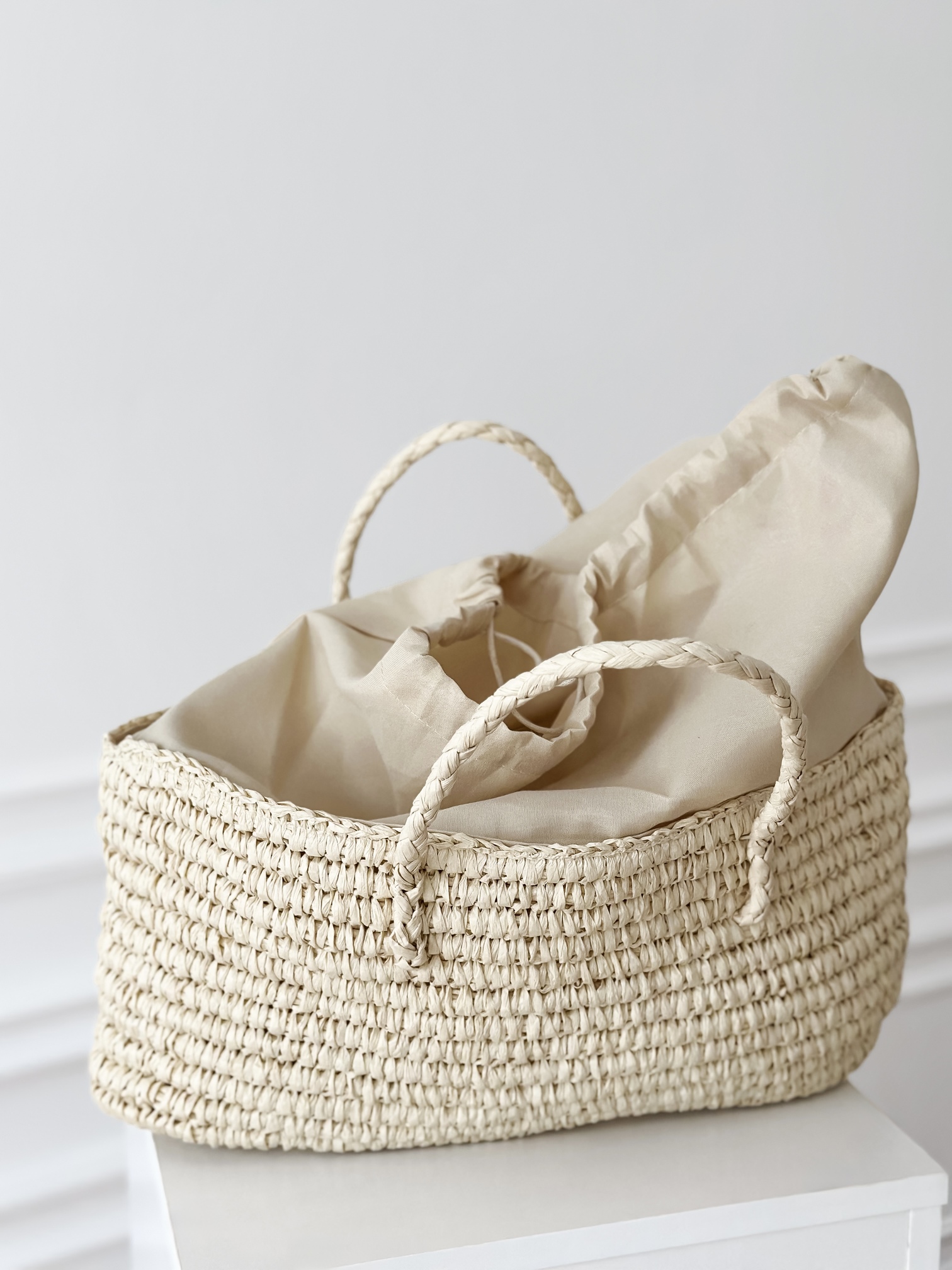 Materiał: naturalna słomka; materiał wewnętrzny (worek) 100% poliester
