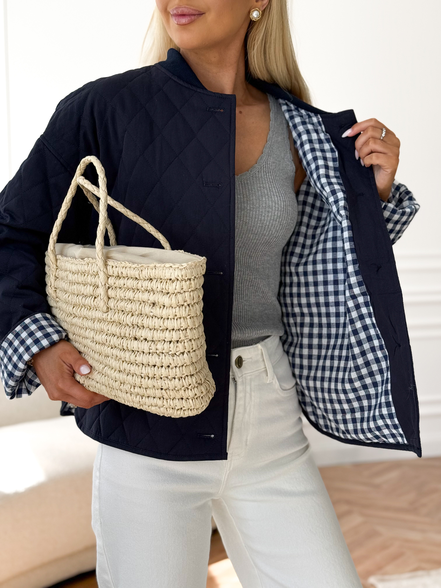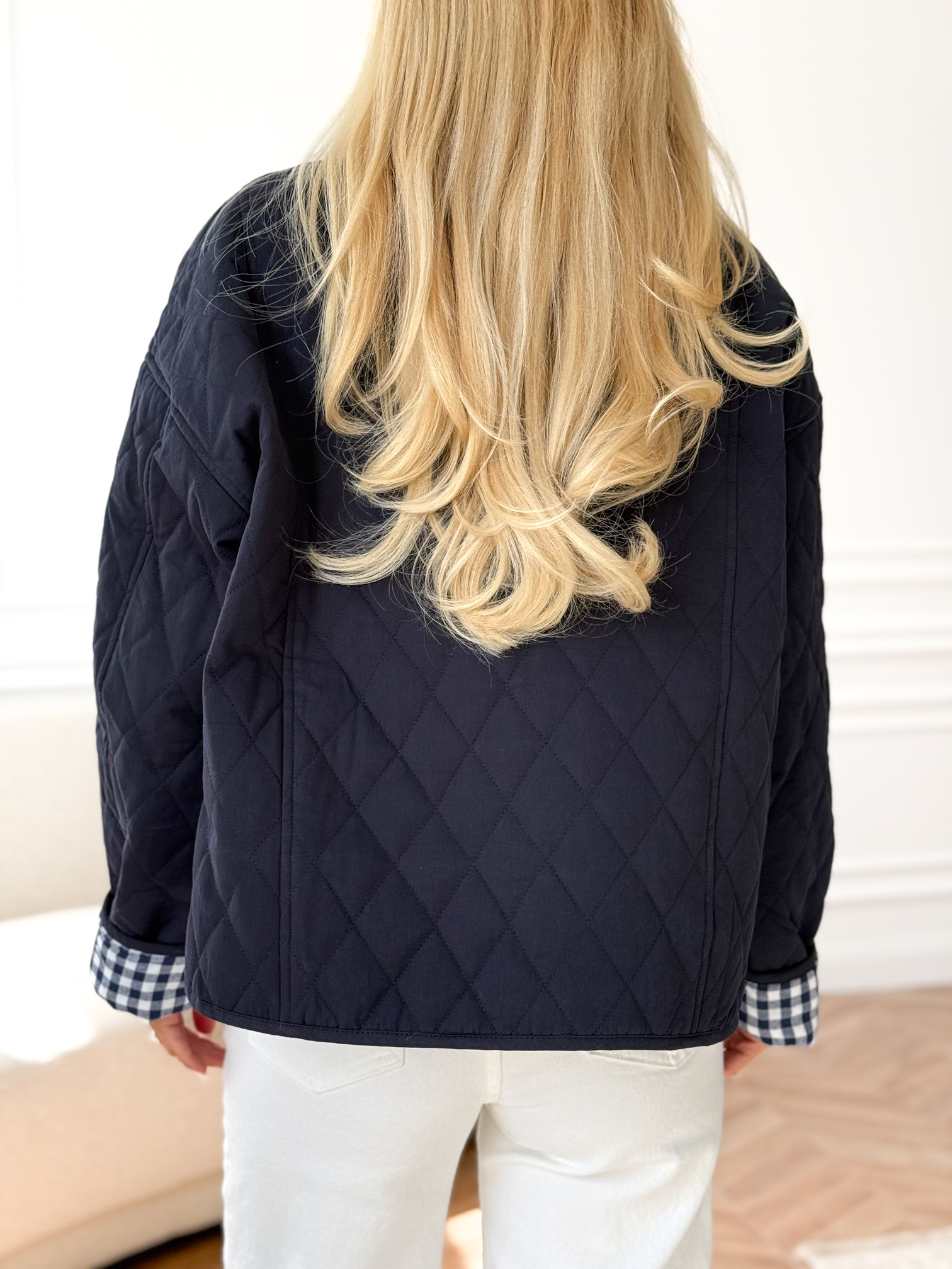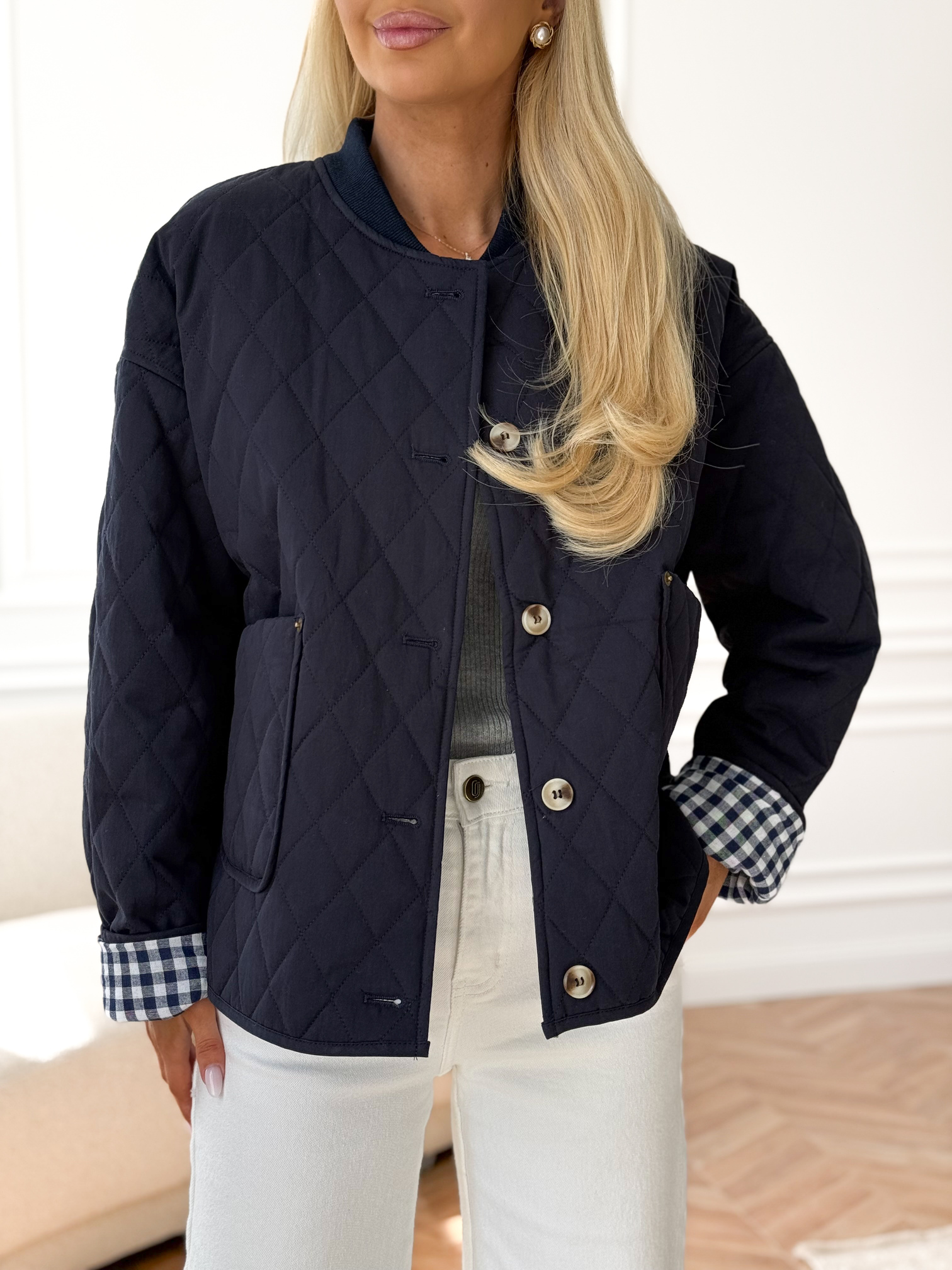 Lekka, pikowana kurtka o luźnym, oversizeowym fasonie.