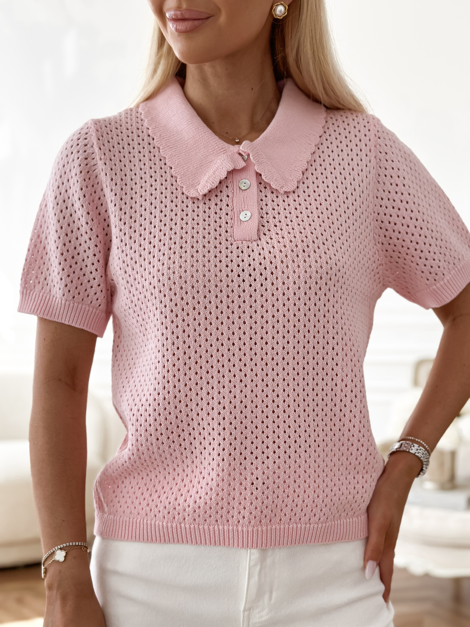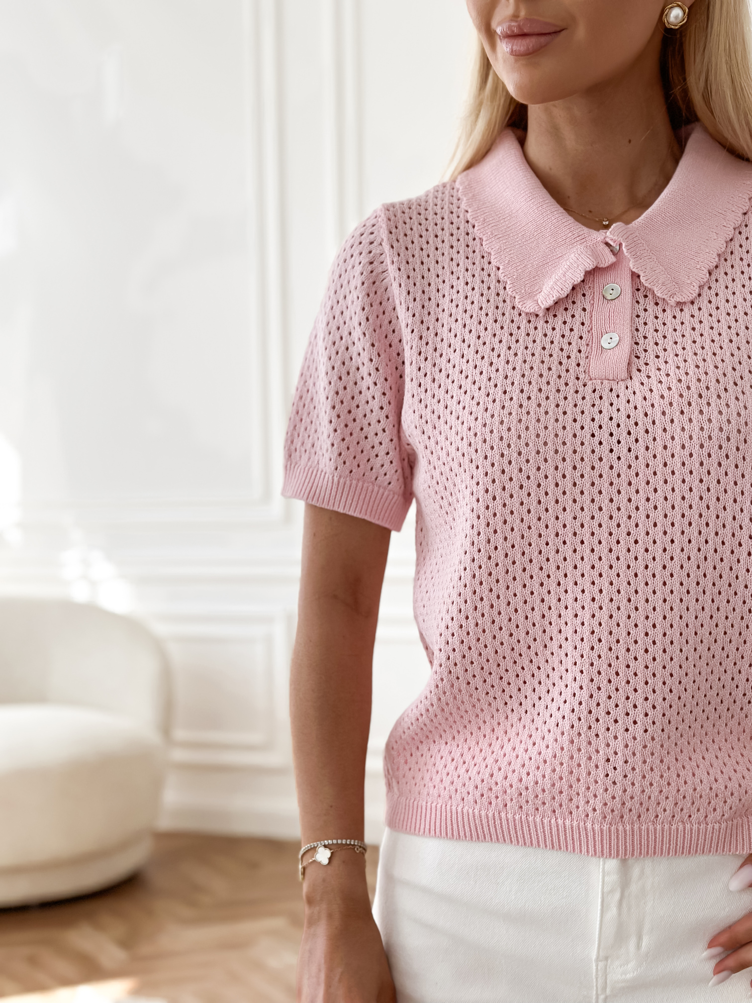 Bawełniane, szydełkowe polo z kołnierzykiem.