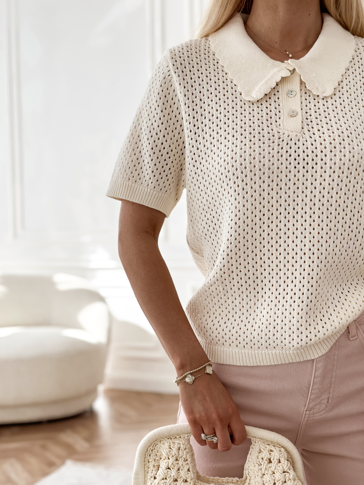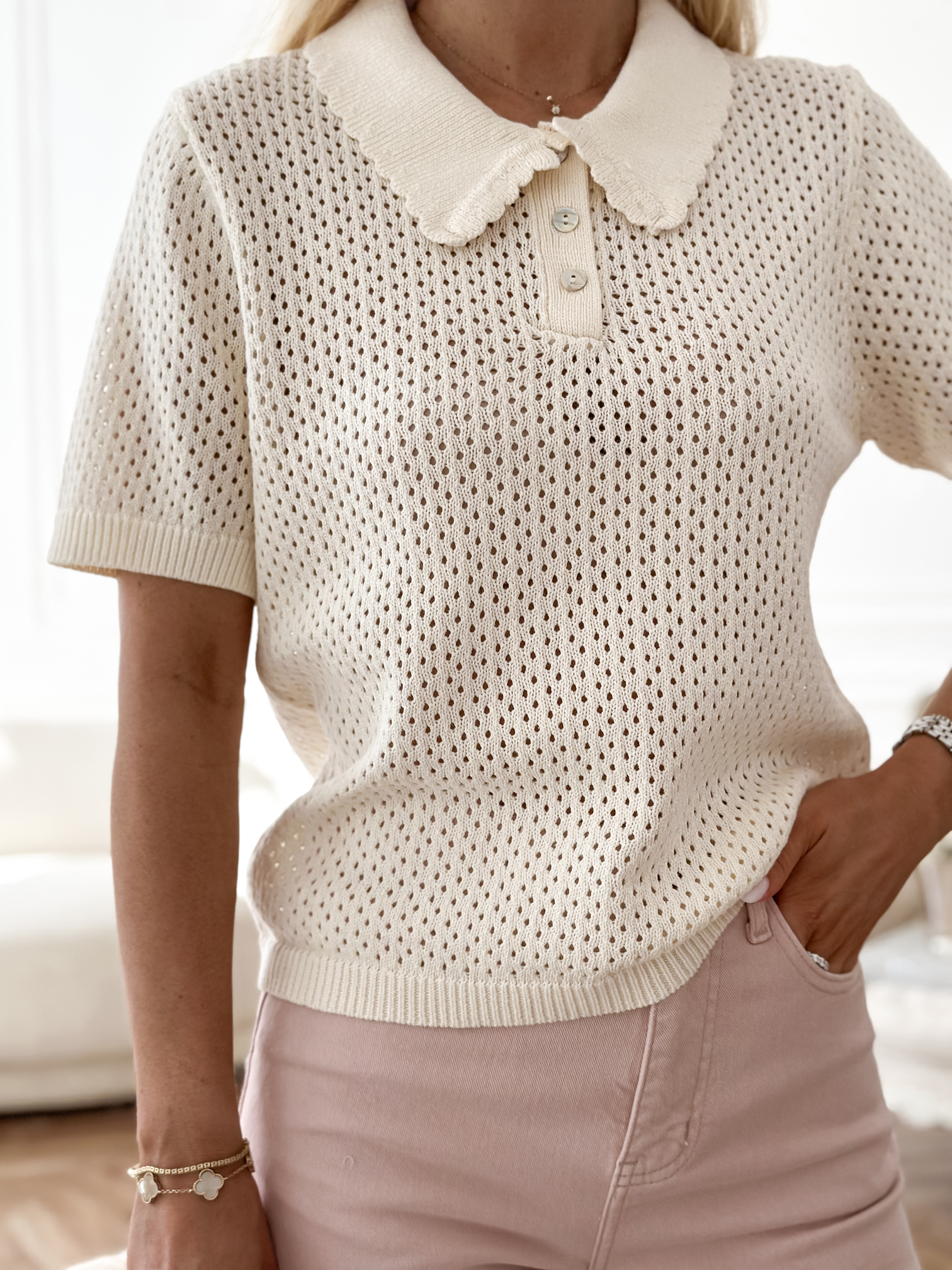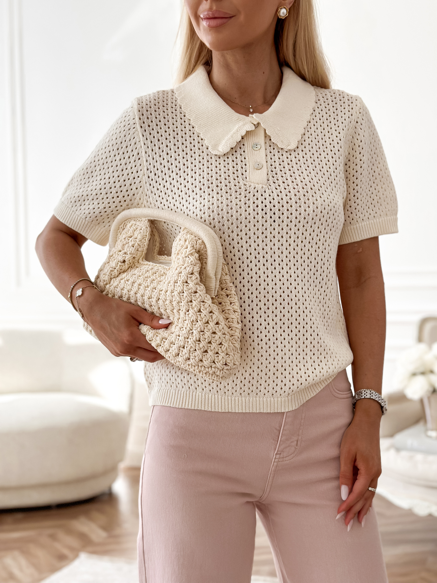 Bawełniane, szydełkowe polo z kołnierzykiem.