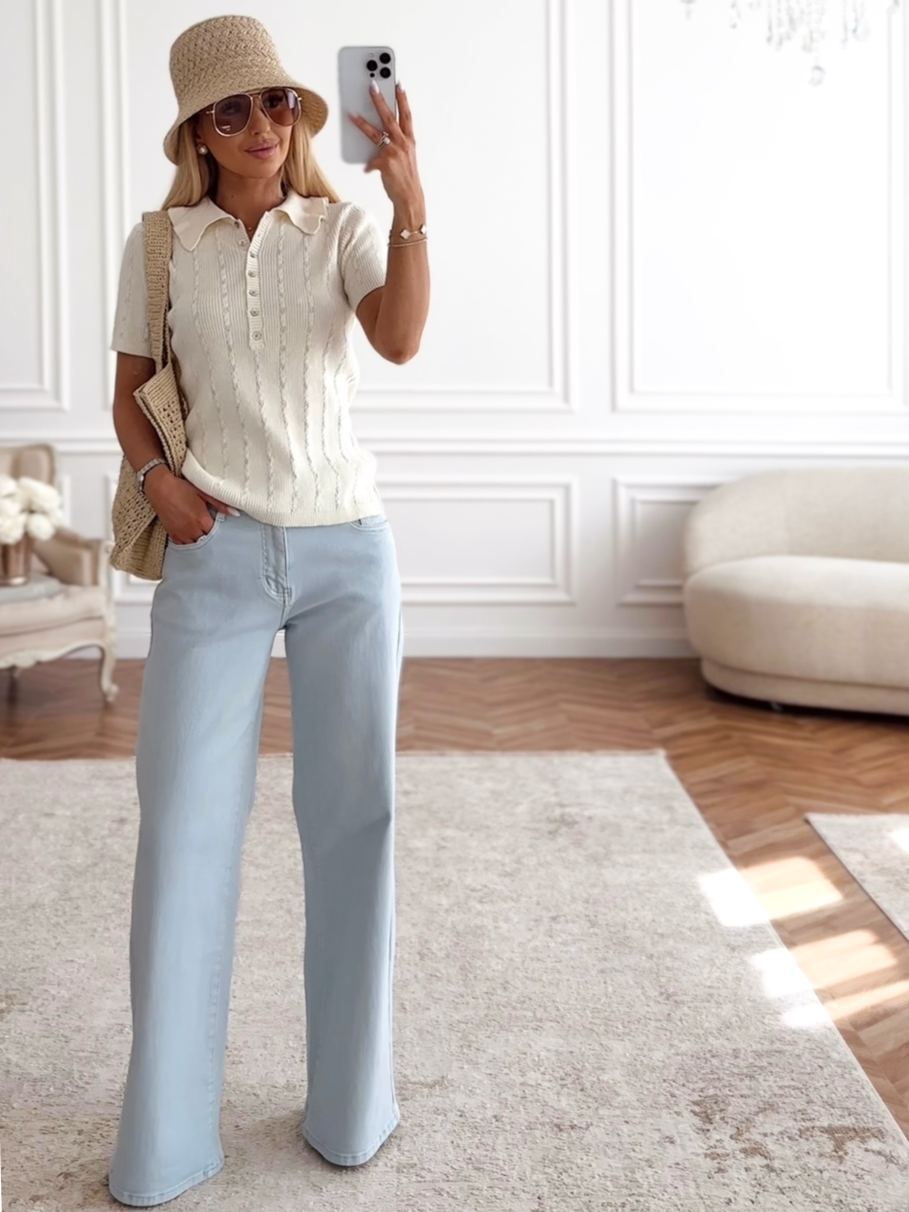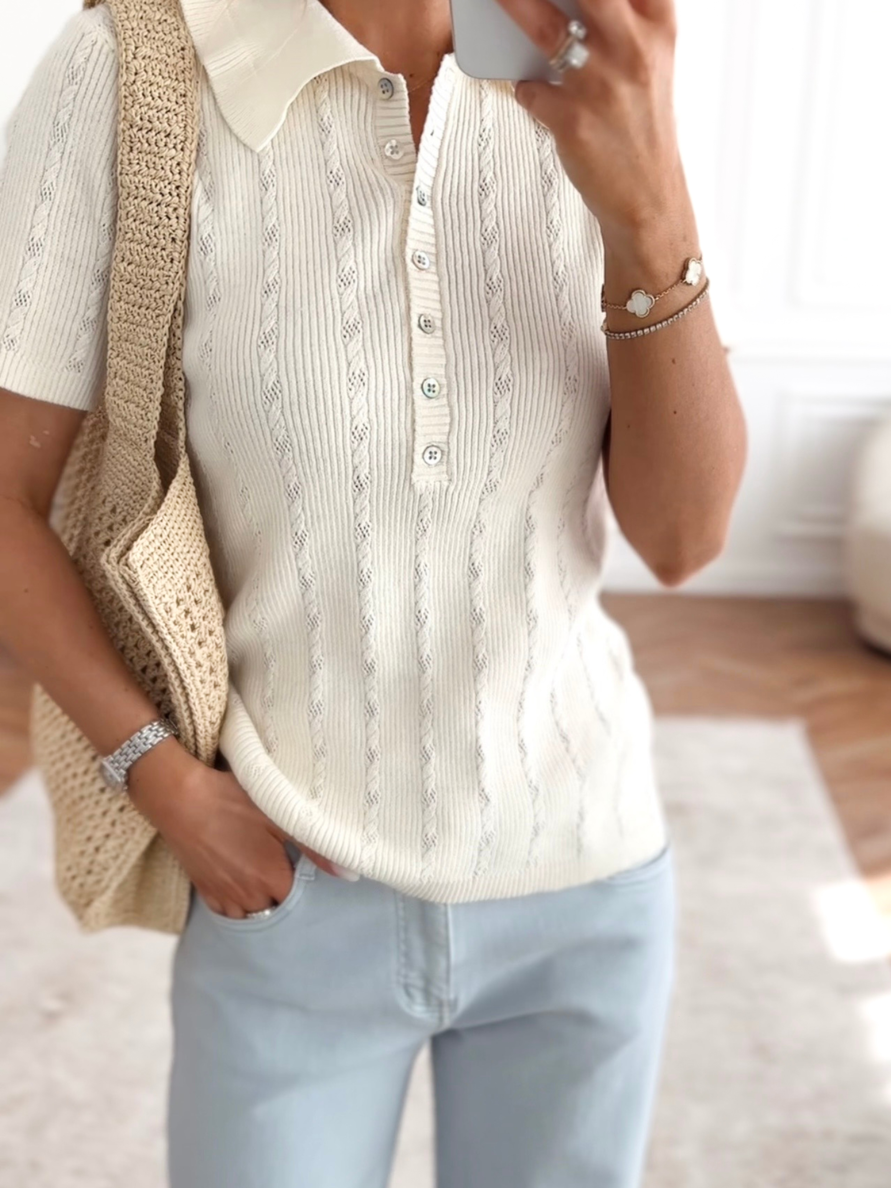 Bawełniane polo z falbaniastym kołnierzykiem.