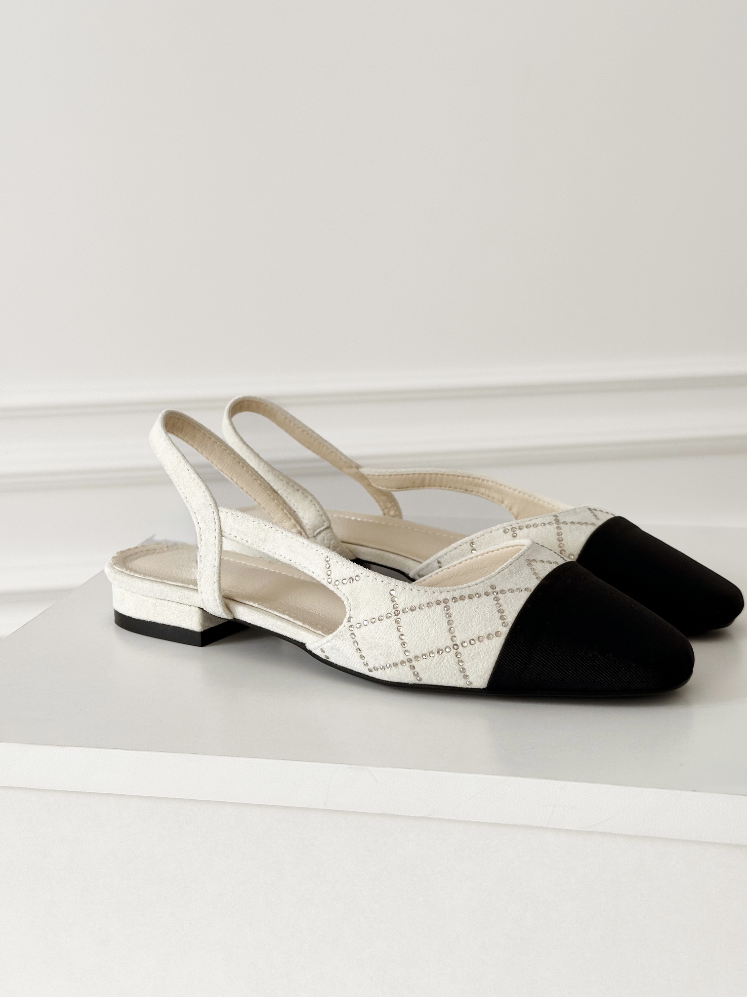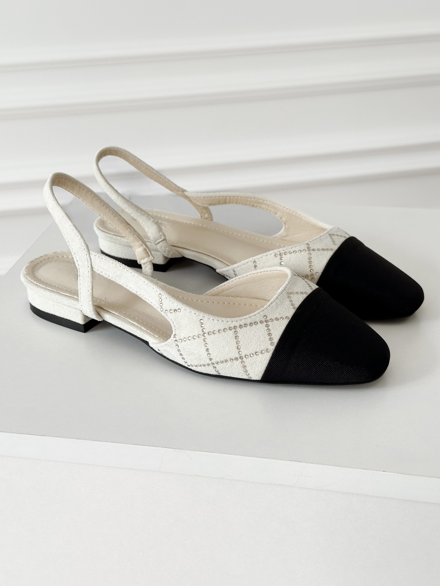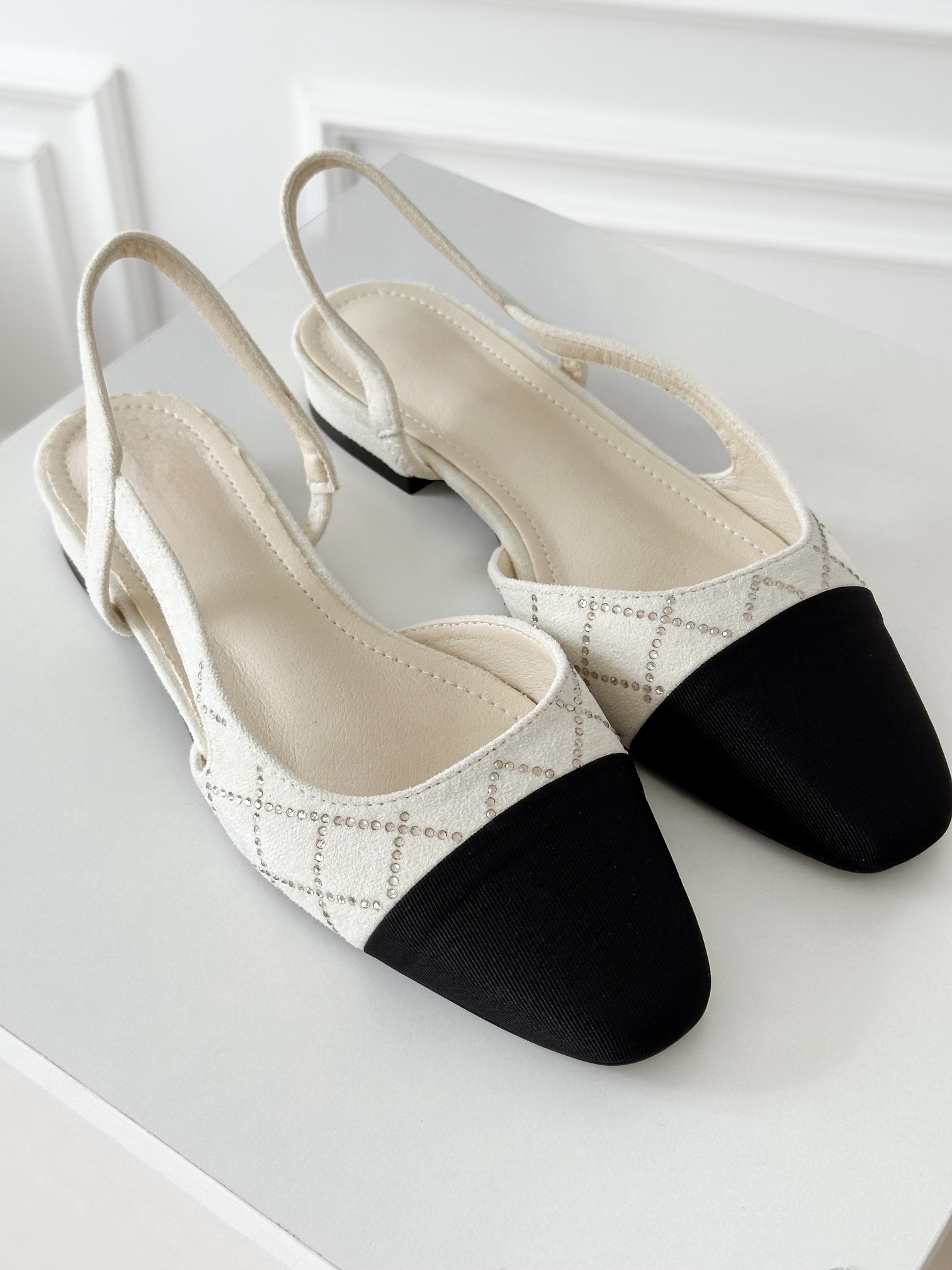 Klasyczne slingbacki z czarnym noskiem na płaskim obcasie.