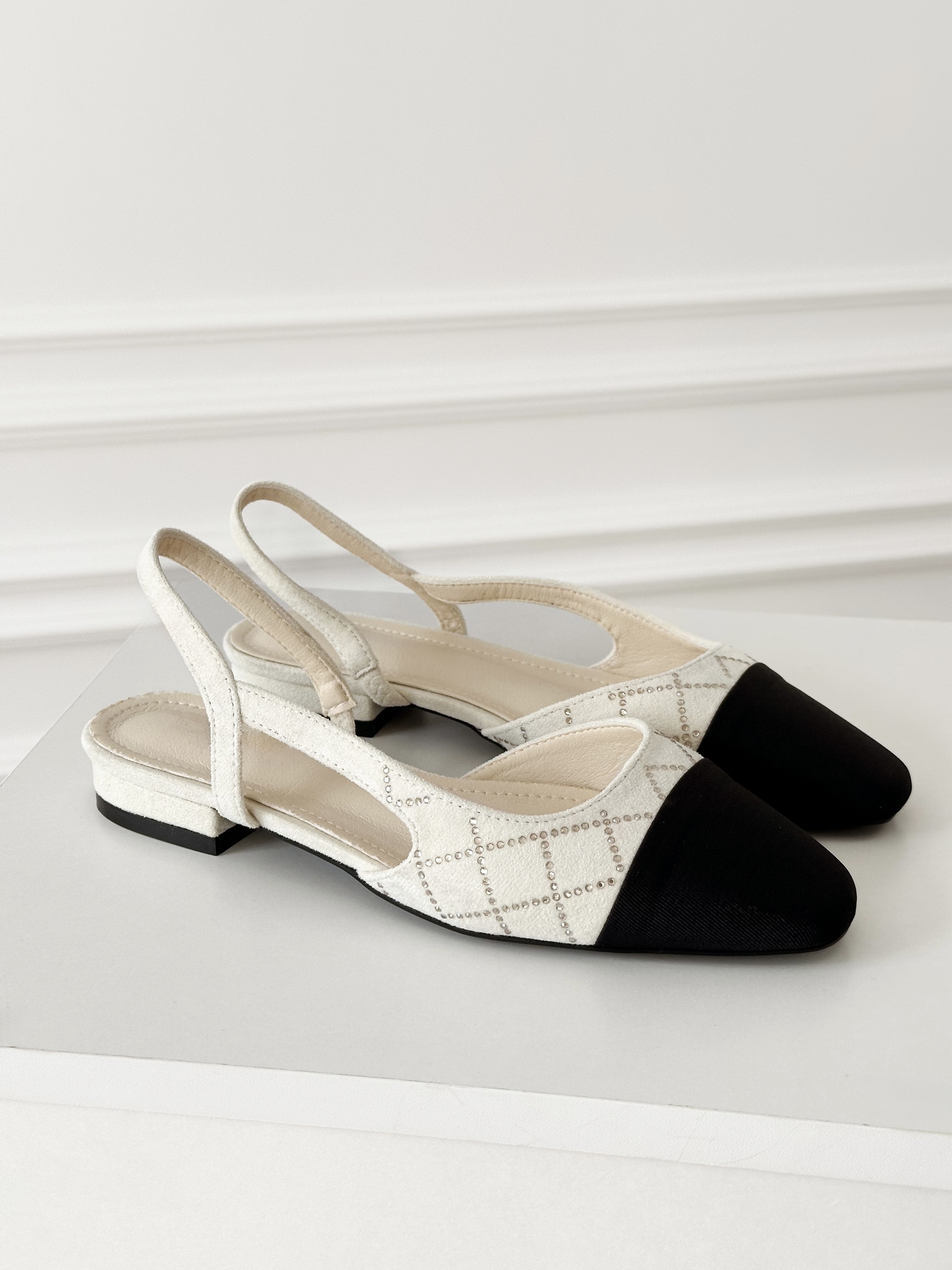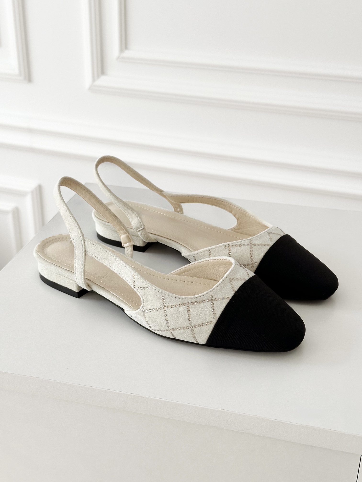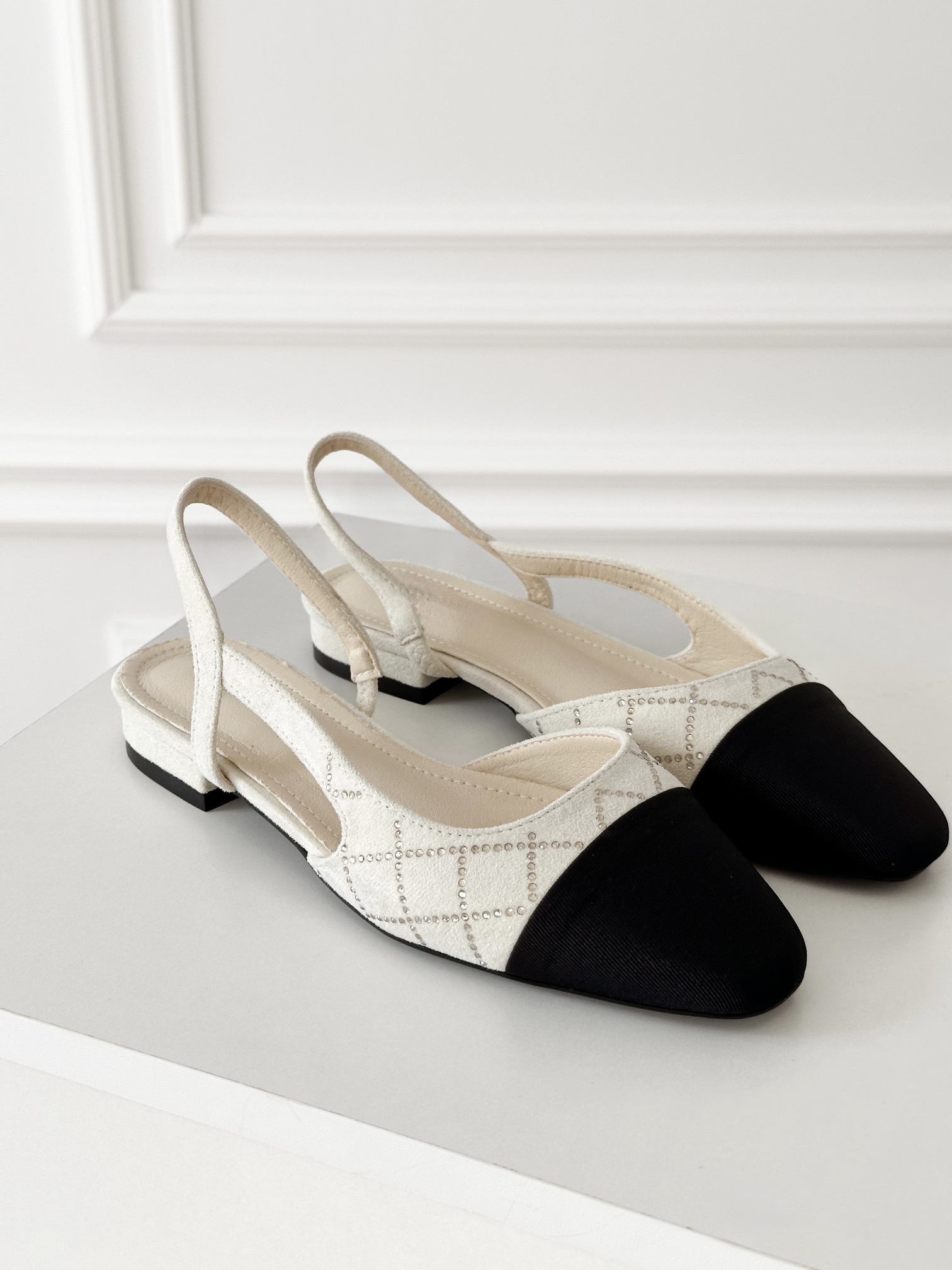 Klasyczne slingbacki z czarnym noskiem na płaskim obcasie.