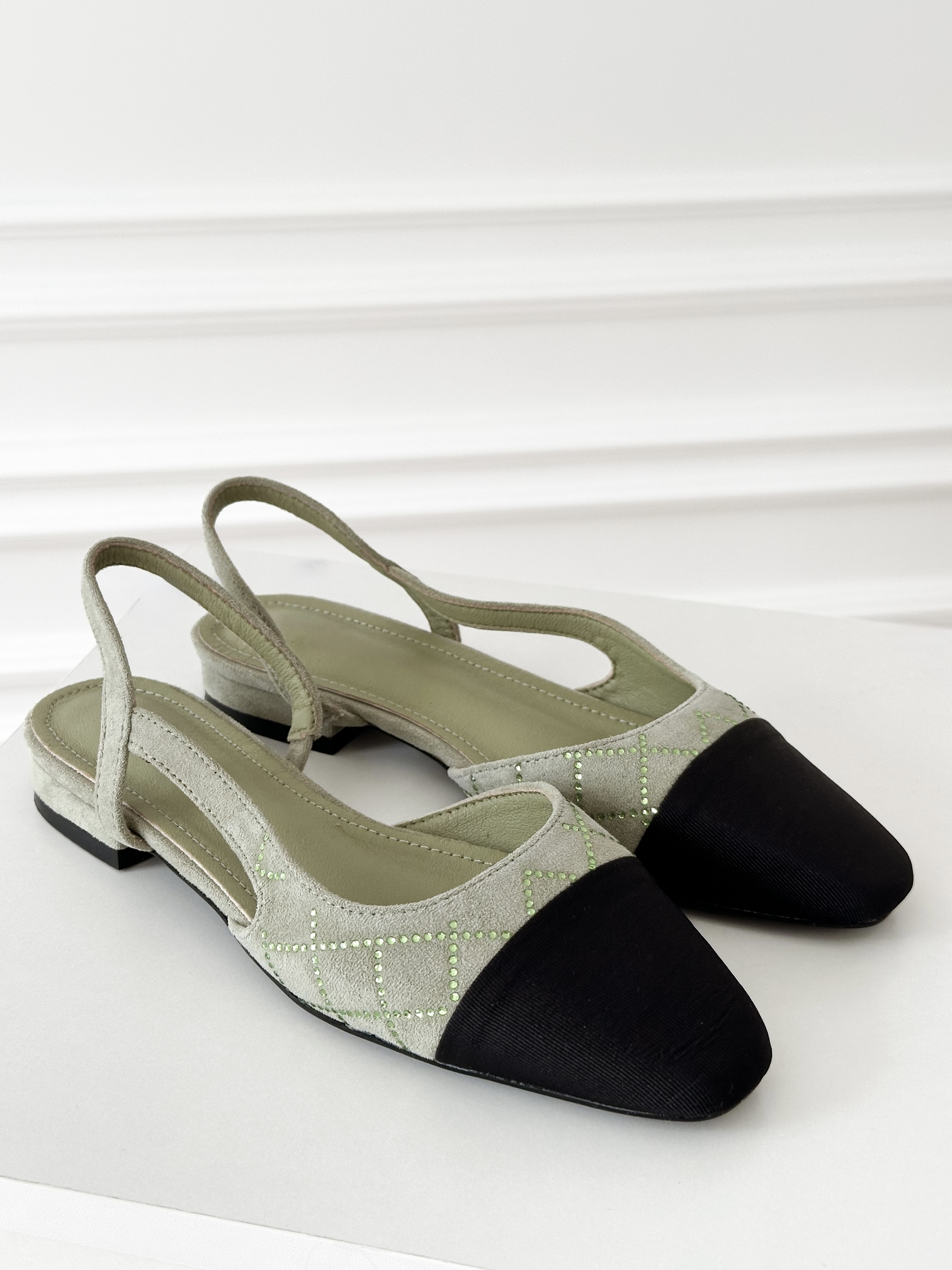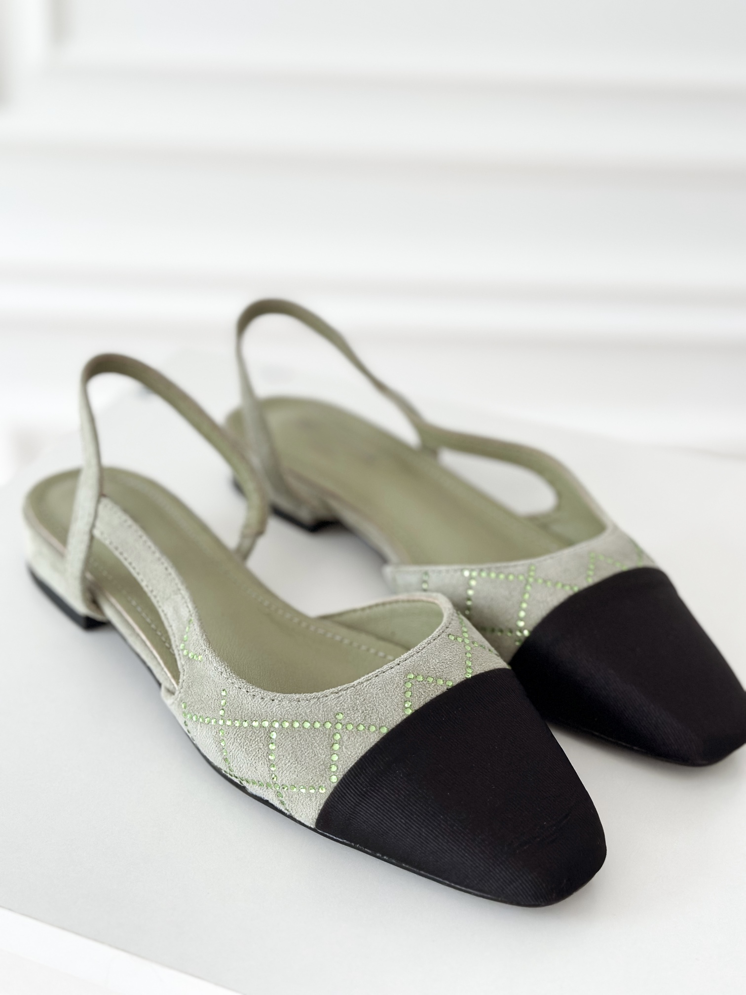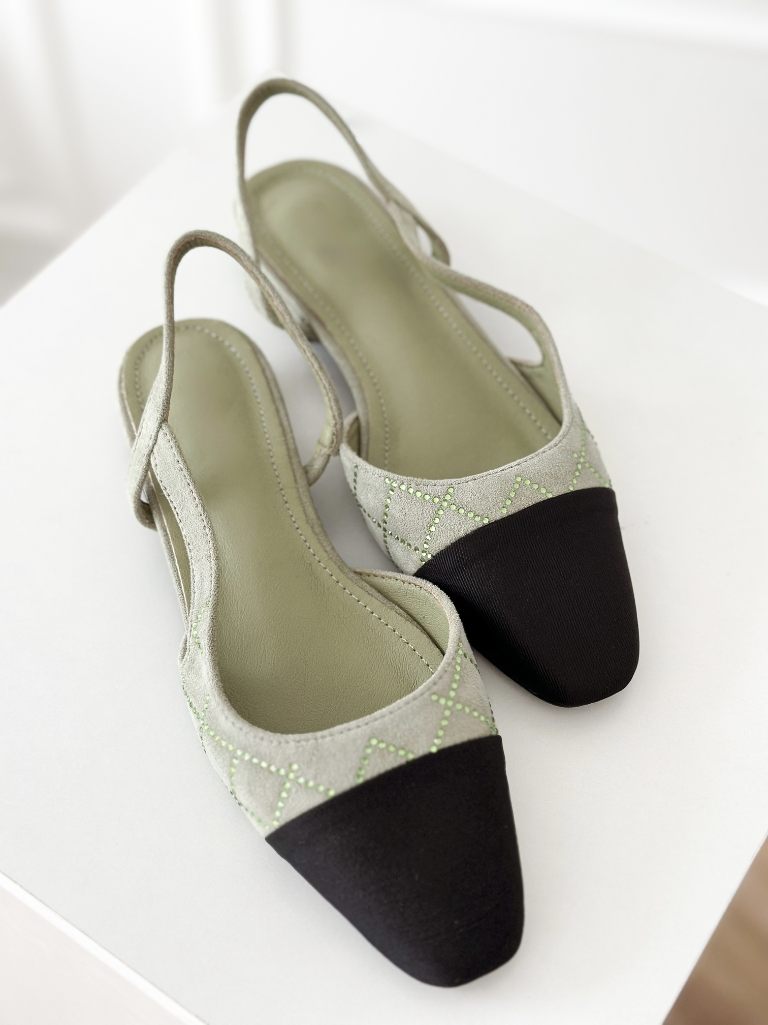 Klasyczne slingbacki z czarnym noskiem na płaskim obcasie.