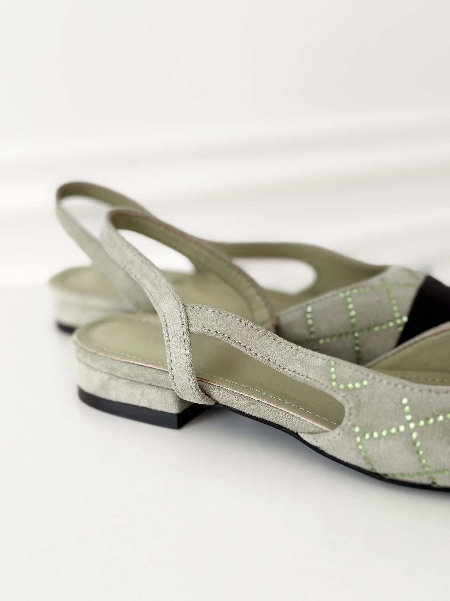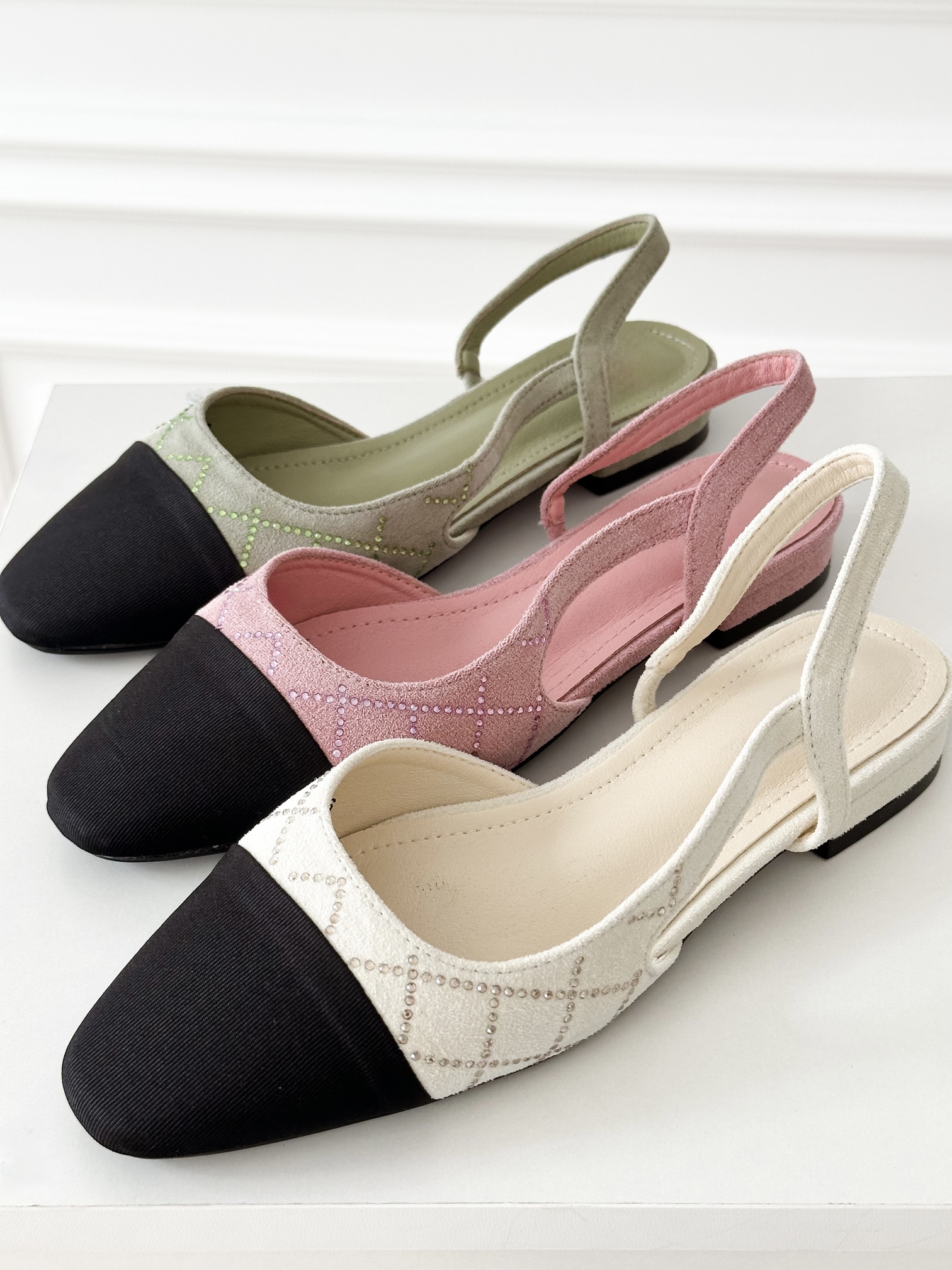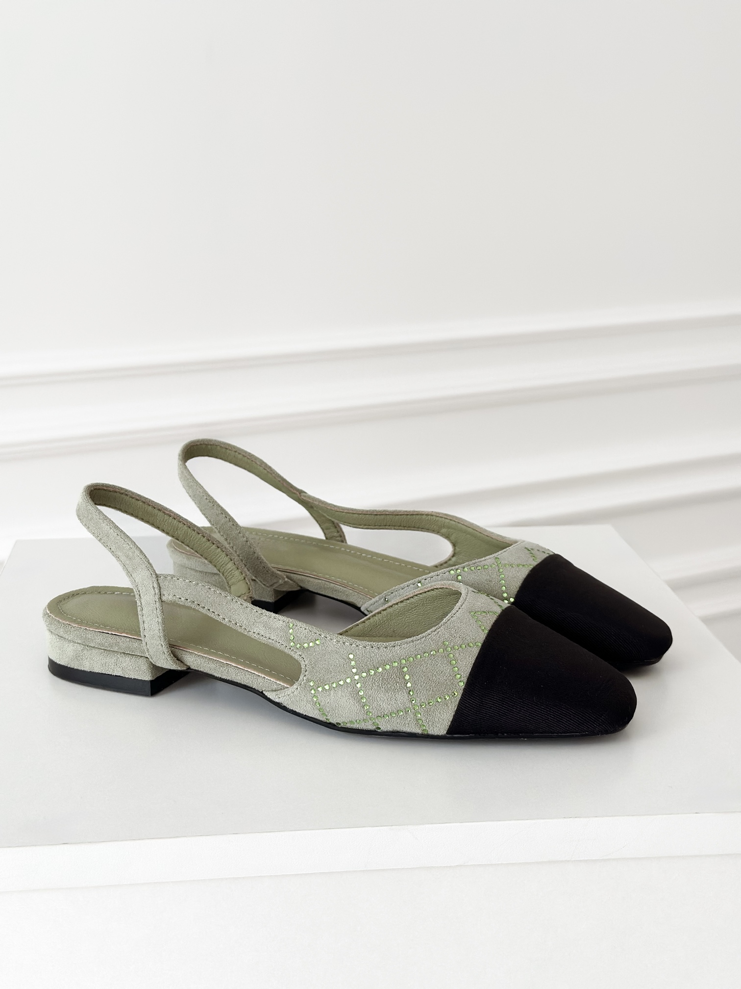 Klasyczne slingbacki z czarnym noskiem na płaskim obcasie.