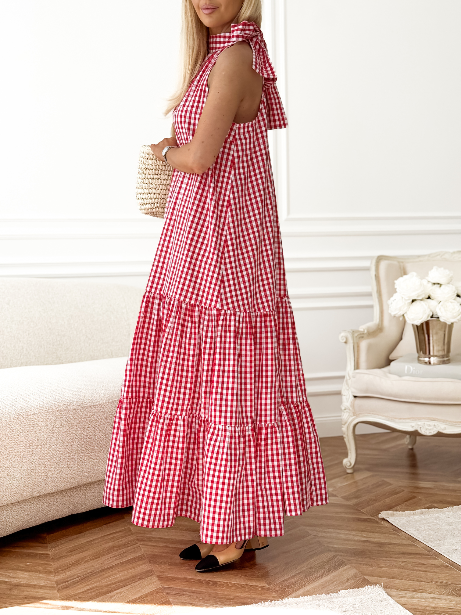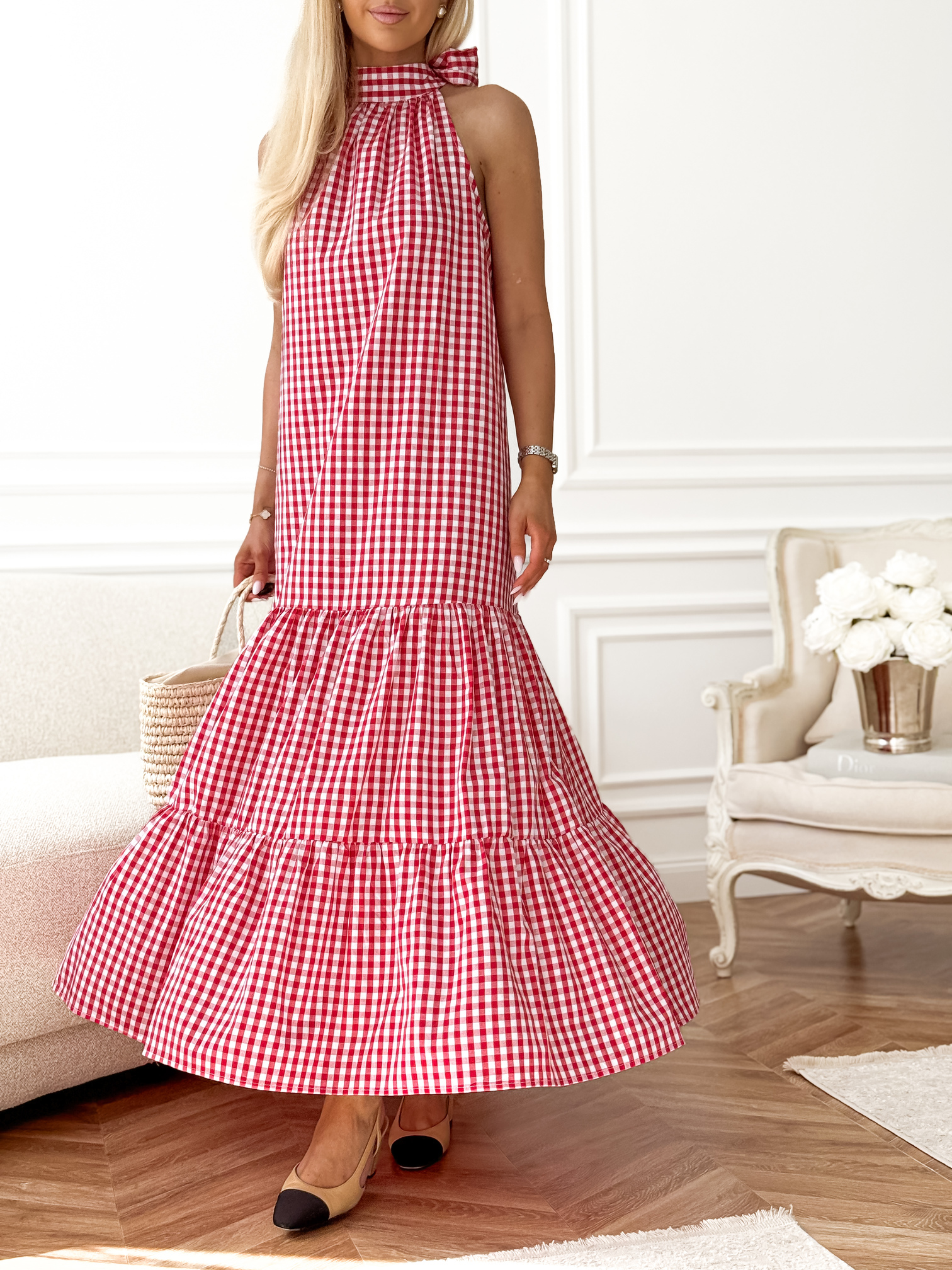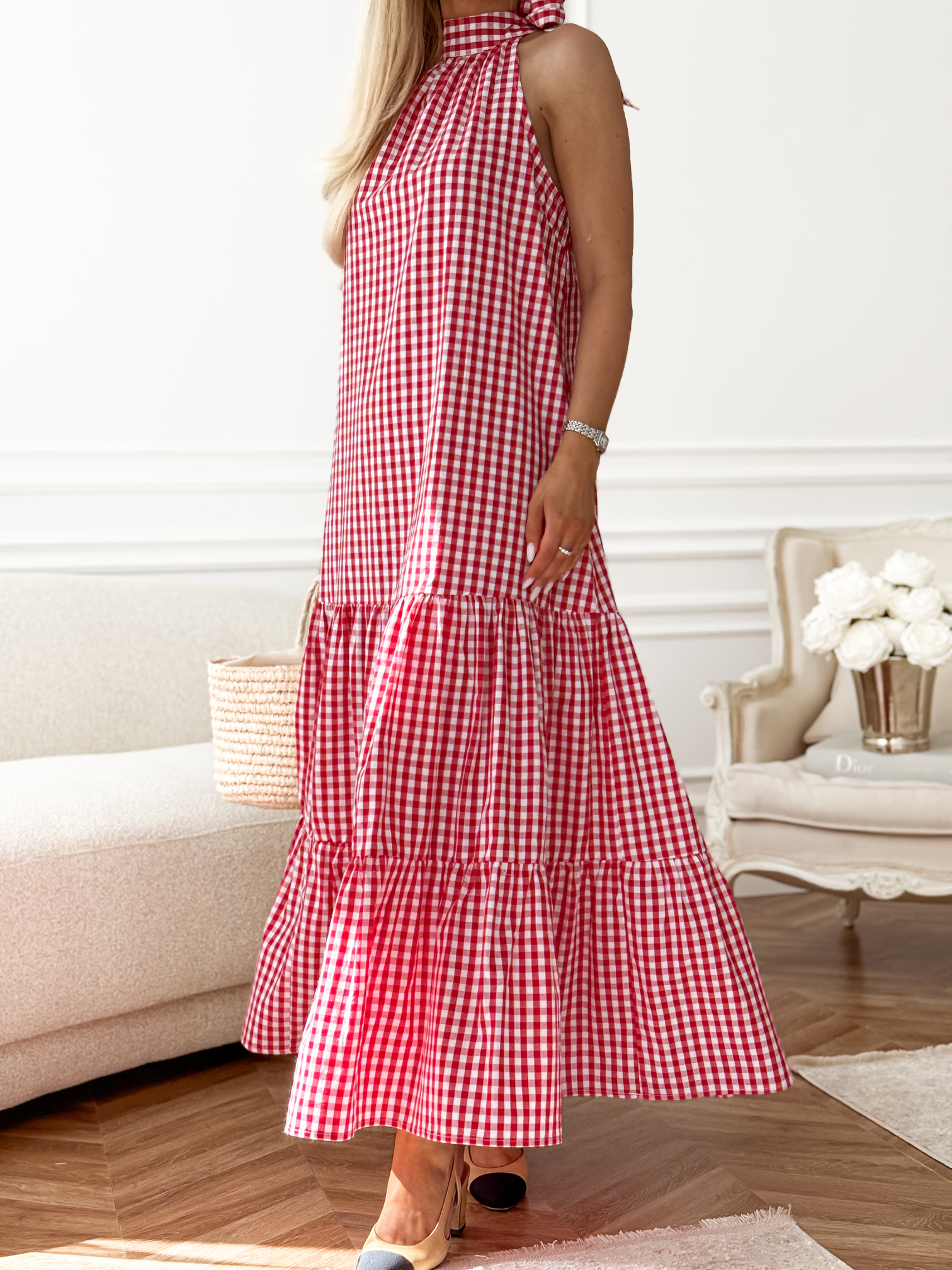 Długa sukienka w krateczkę vichy (gingham).