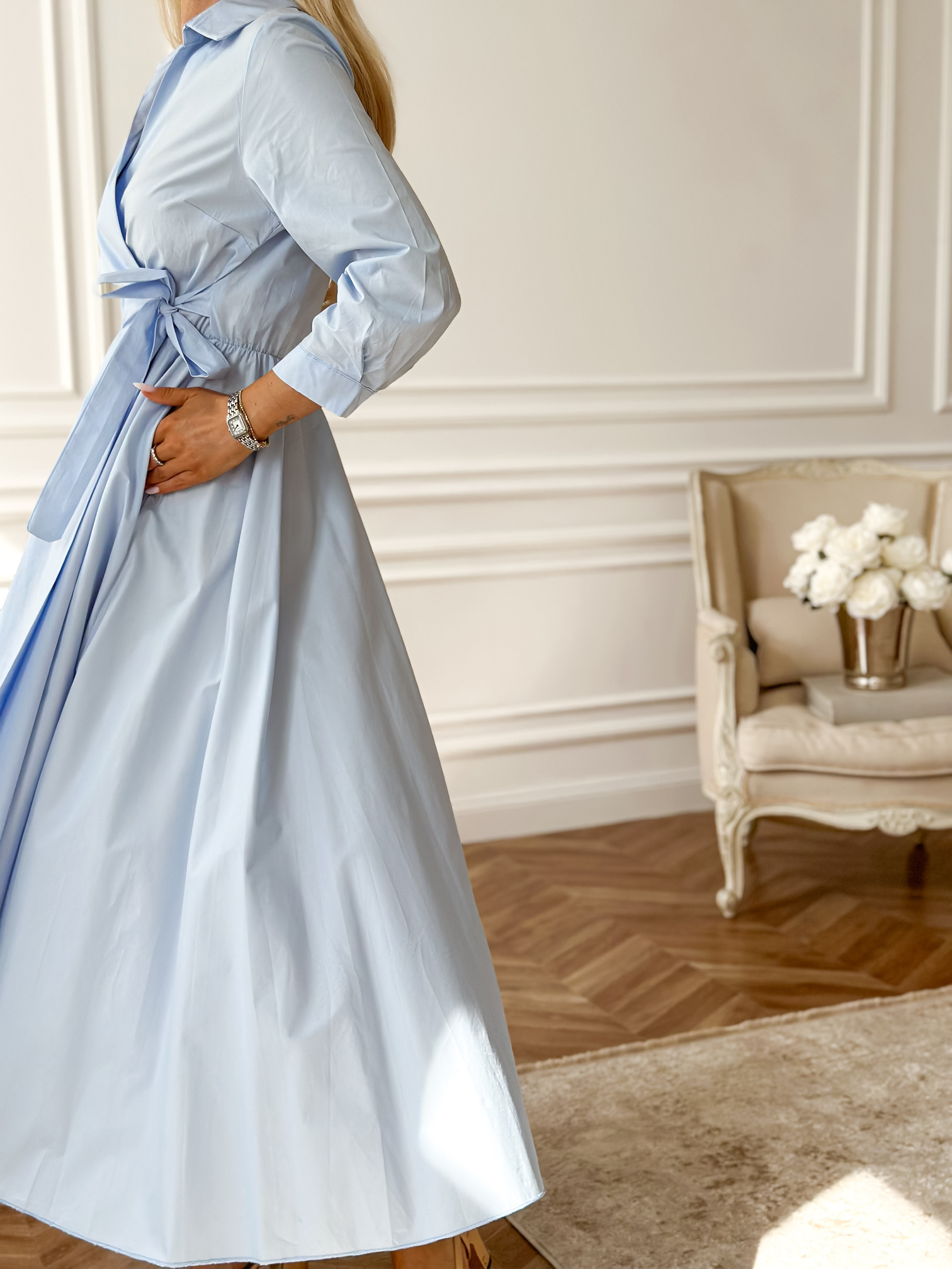 Wiązanie z boku i w środku sukienki.