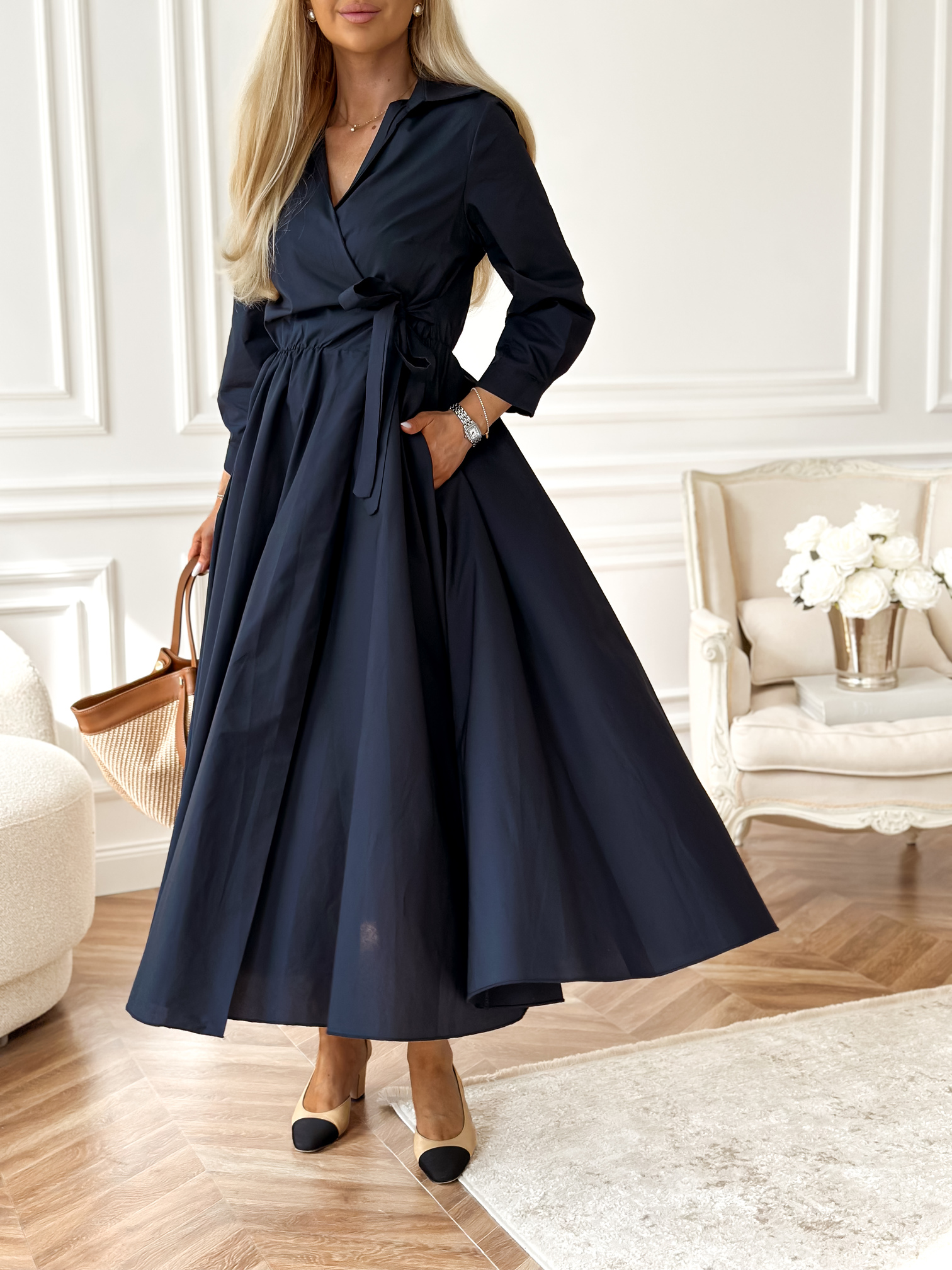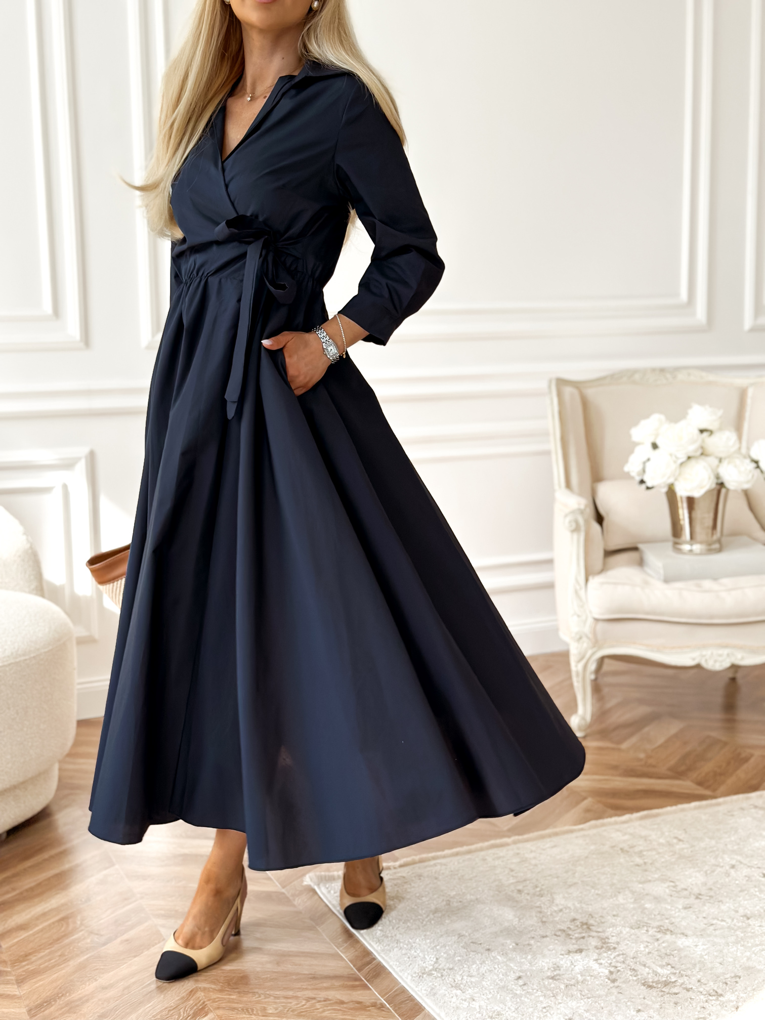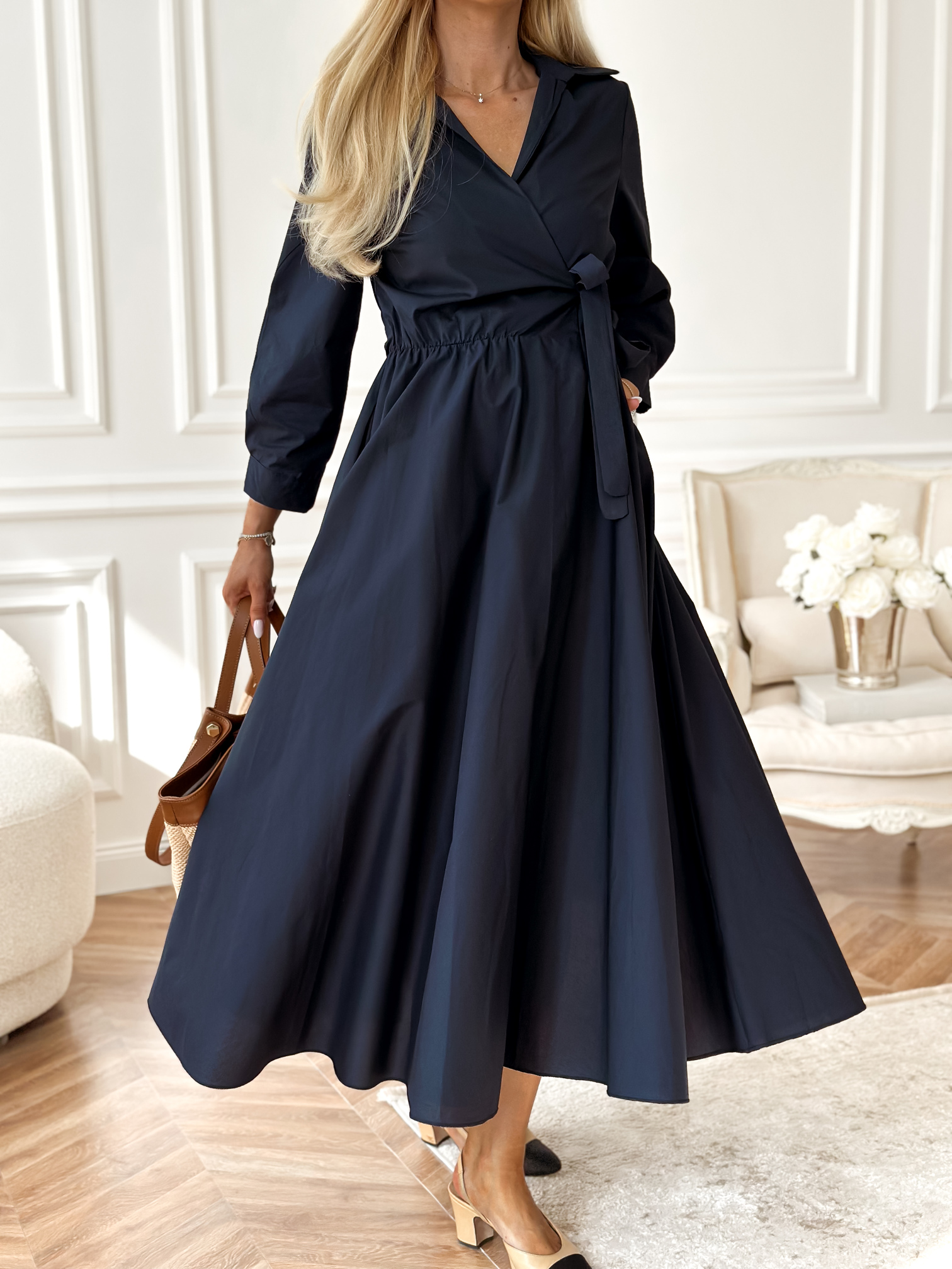 Kopertowa / koszulowa sukienka długości midi.