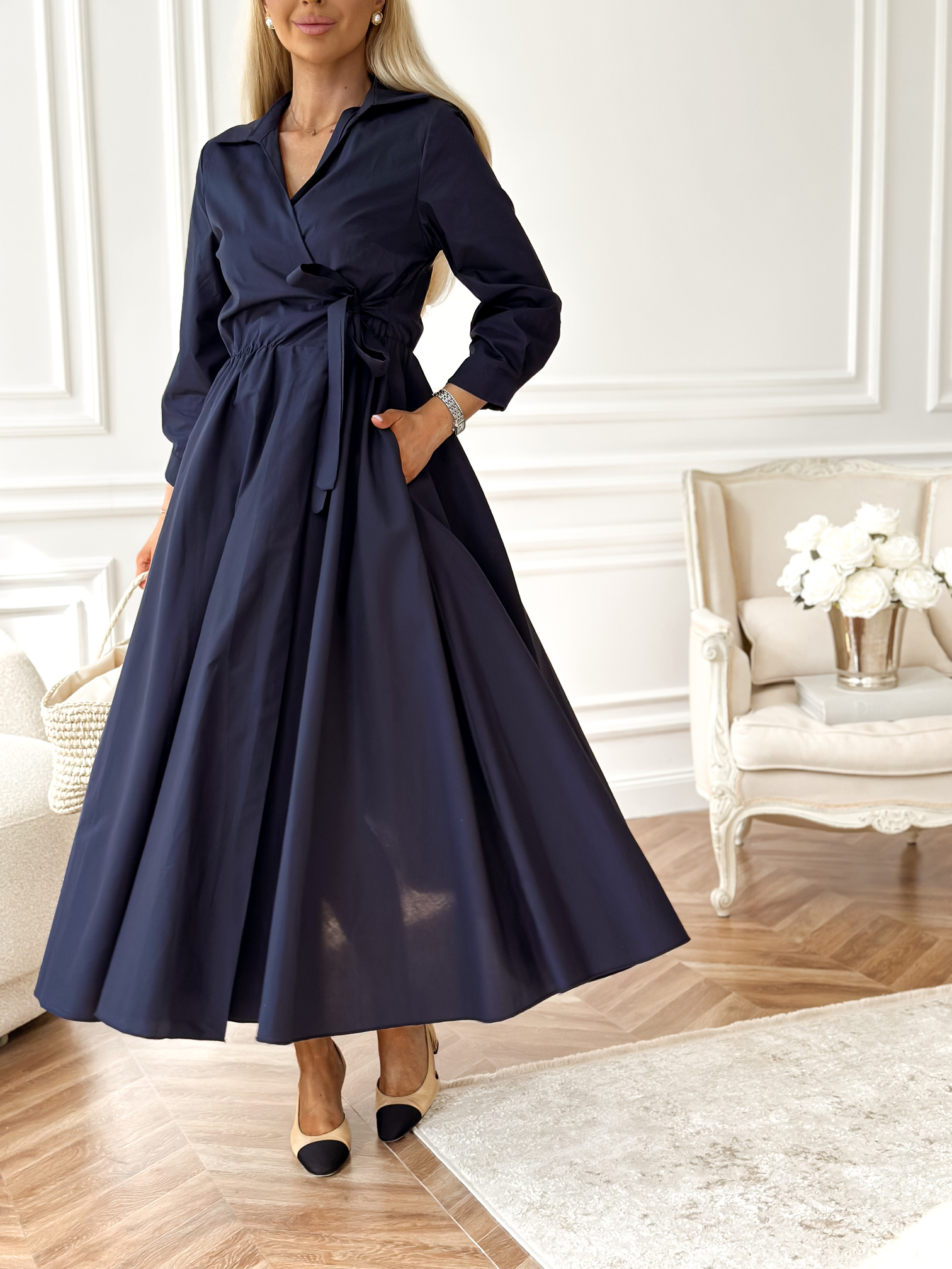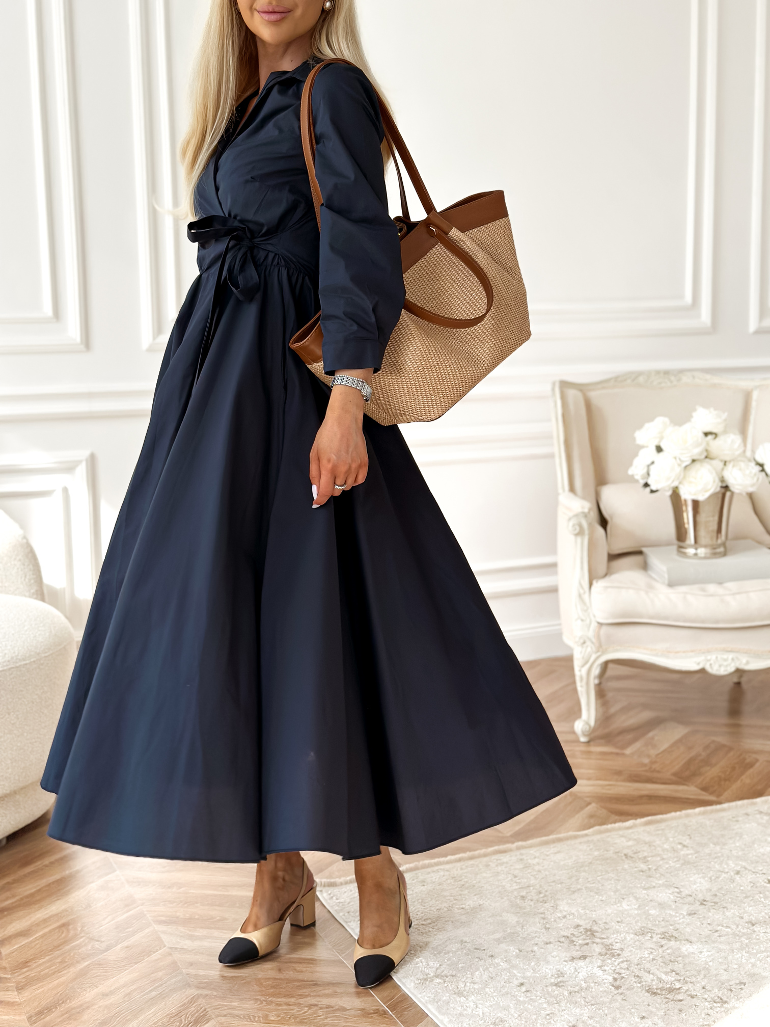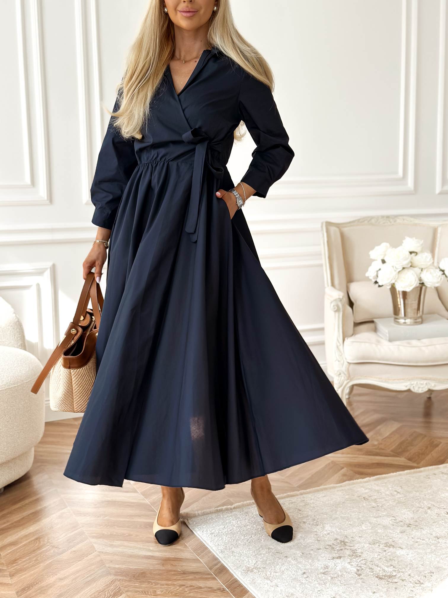 Kopertowa / koszulowa sukienka długości midi.