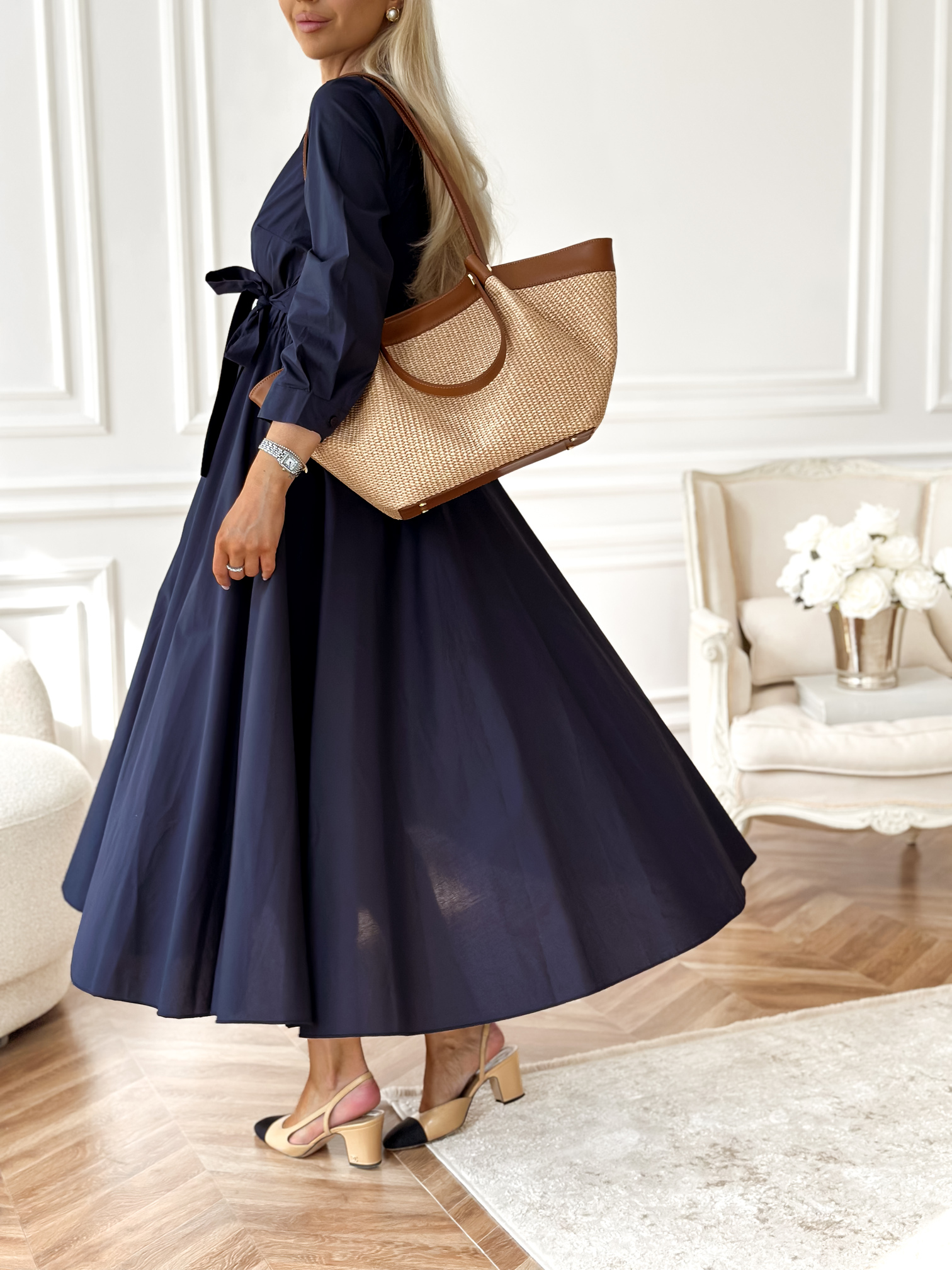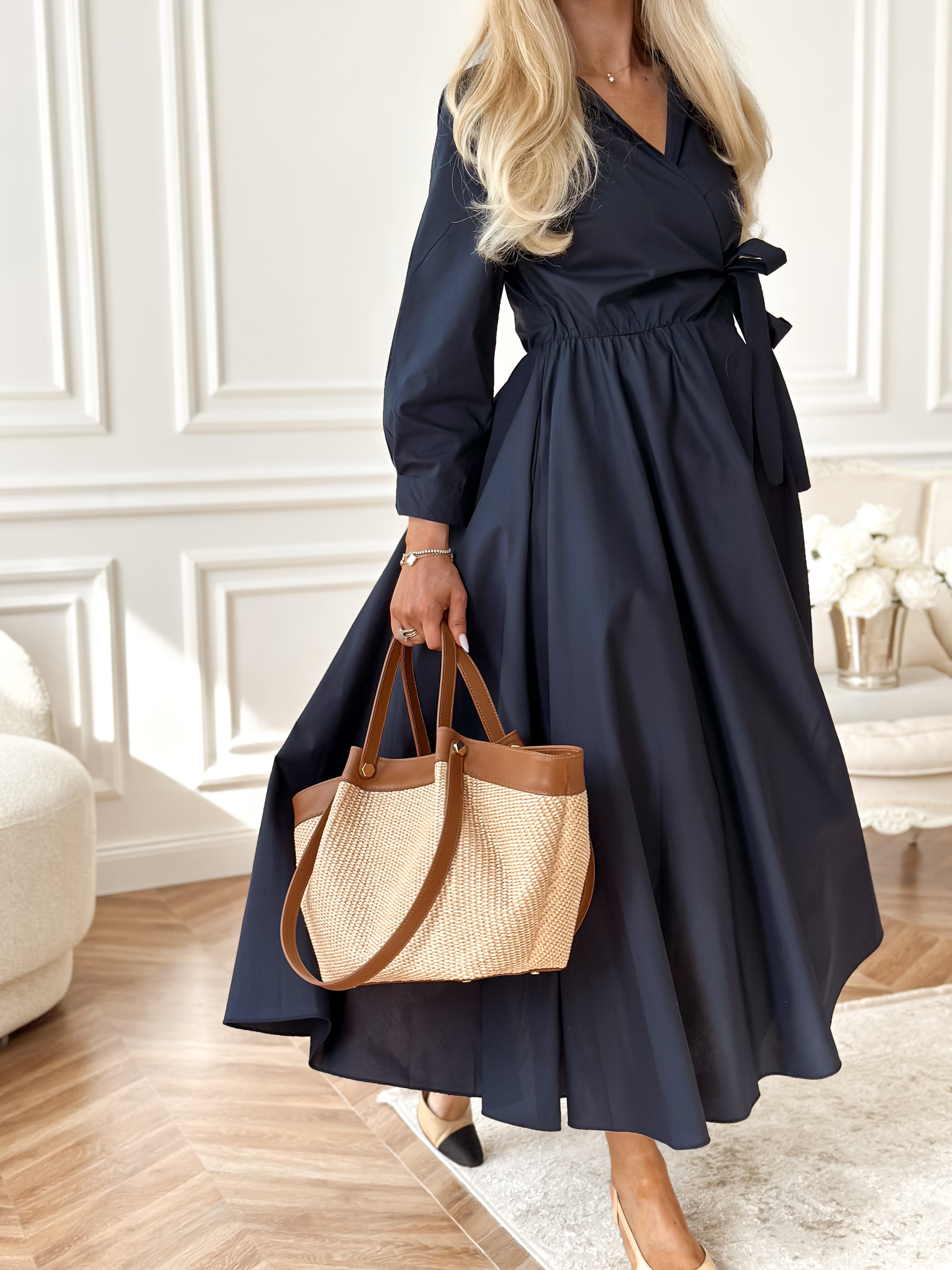 Wiązanie z boku i w środku sukienki.